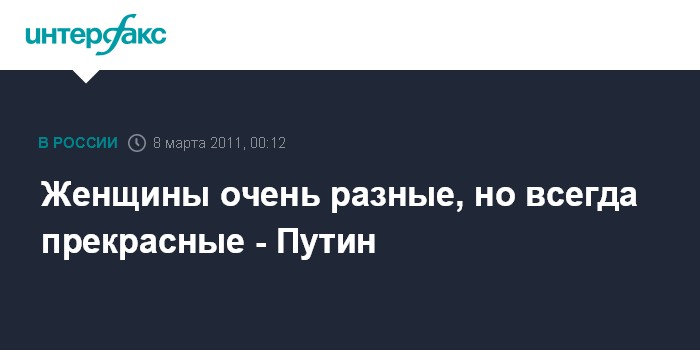 "Женщина дает всем нам жизнь. Мы все должны быть благодарны женщине за то, что она дает нам жизнь. И этим почти все сказано", - заявил В.Путин, поздравляя накануне 8 марта с наступающим праздником журналисток правительственного пула и всех женщин России.