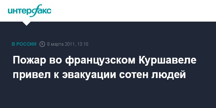 Лондон. 8 марта. INTERFAX.RU - Не менее двух человек пострадали, около 400 человек были эвакуированы из-за пожара на французском альпийском курорте Куршавель. Как сообщает британская телерадиокорпорация Би-би-си, пожар вспыхнул в жилом комплексе возле гостиницы Hotel du Golf. Пострадавших доставили в местную больницу. Причина пожара неизвестна.