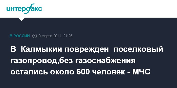 Ростов-на-Дону.8 марта. ИНТЕРФАКС - В Калмыкии в поселке Нарын в результате повреждения газопровода полностью отключено газоснабжение.