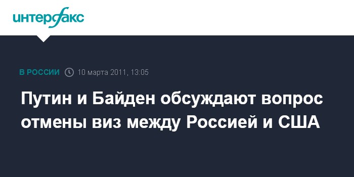 "Если США и РФ договорятся о безвизовом режиме раньше РФ и ЕС - это было бы историческим шагом", - сказал Путин на встрече с вице-президентом США Джозефом Байденом.