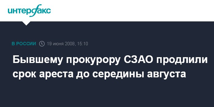 Бывшему прокурору СЗАО продлили срок ареста до середины августа