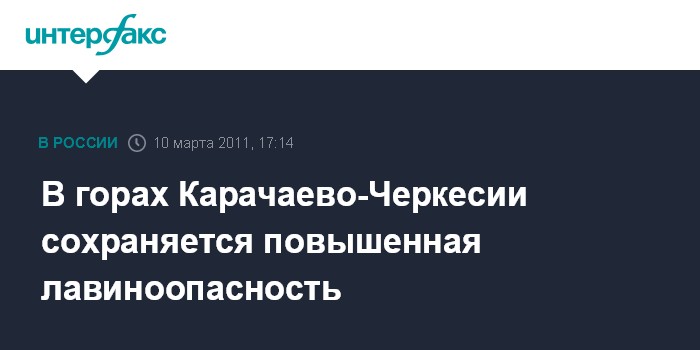 Черкесск. 10 марта. INTERFAX.RU - Главное управление МЧС РФ по Карачаево-Черкесии распространило экстренное предупреждение об ожидаемых сходах снежных лавин в горных районах республики и возможных снежных заносах на автодорогах КЧР.