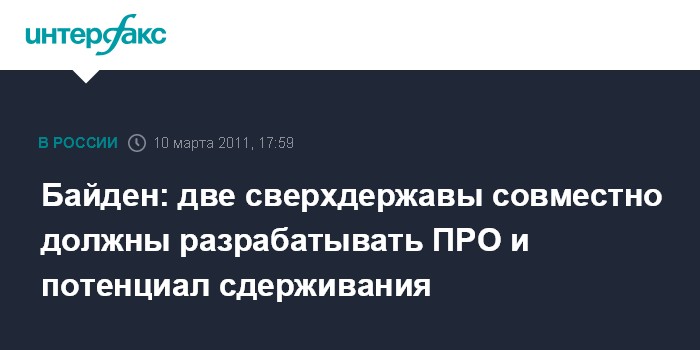 Москва. 10 марта. INTERFAX.RU - Вице-президент США Джозеф Байден поддерживает идею создания совместно с Россией системы ПРО, которая, по его словам, поможет разубедить другие страны становиться ядерными державами.