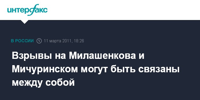 Москва. 11 марта. INTERFAX.RU - В ГУВД Москвы не исключают взаимосвязи двух взрывов в Москве - на улице Милашенкова 11 марта и на Мичуринском проспекте 9 марта, сообщил "Интерфаксу" официальный представитель ГУВД Москвы Виктор Бирюков.