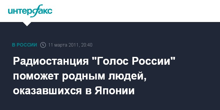 Радиостанция "Голос России" поможет родным людей, оказавшихся в Японии