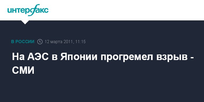 Токио. 12 марта. INTERFAX.RU - Взрыв произошел в субботу на реакторе N1 АЭС в префектуре Фукусима, сообщают японские СМИ. В сообщении отмечается, что над станцией поднимается облако белого дыма. Ранее японская телекомпания Эн-Эйч-Кей сообщала, что рабочие пытаются охладить реактор Фукусима-Даиичи, но пока безуспешно.