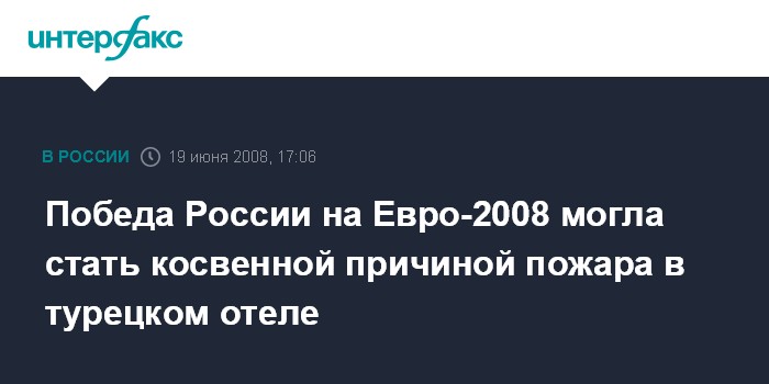 Победа России на Евро-2008 могла стать косвенной причиной пожара в турецком отеле
