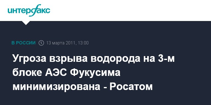Угроза взрыва водорода на 3-м блоке АЭС Фукусима минимизирована - Росатом