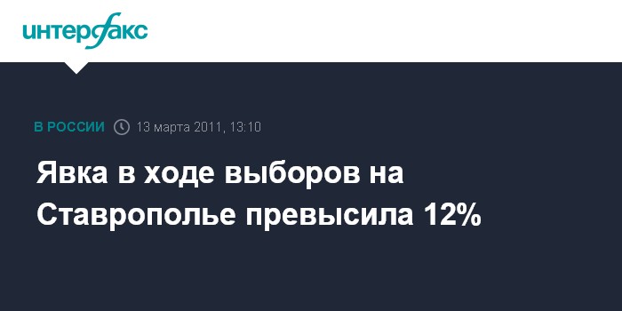 Пятигорск. 13 марта. INTERFAX.RU - В Ставропольском крае, где в воскресенье утром открылись около 600 избирательных участков, к 12:00 мск проголосовали 12,26% избирателей, сообщает сайт краевой избирательной комиссии. "Все 589 избирательных участков открыты и приступили к работе. На 50 участках Ставрополя, Пятигорска и Невинномысска голосование идет с применением комплексов обработки избирательных бюллетеней (КОИБ)", - говорится в сообщении. По данным на 12:00 мск воскресенья, проголосовали 9,591 из 78,254 человек.