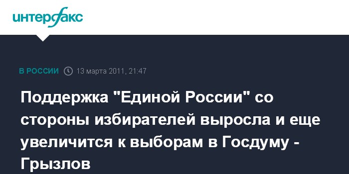 Как он заметил, поддержка "Единой России" со стороны избирателей выросла. "И считаю, будет рост (этой поддержки - ИФ) на выборах в Госдуму", - сказал он.