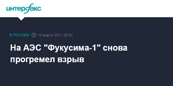 Лондон. 14 марта. ИНТЕРФАКС - Взрыв произошел в третьем энергоблоке АЭС" Фукусима-1" в Японии, сообщает в понедельник телерадиокорпорация Би-би-си.