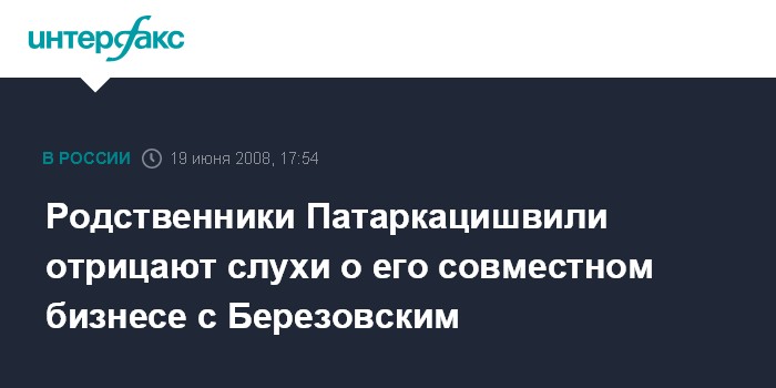 Москва. 19 июня. INTERFAX.RU - Семья грузинского бизнесмена Бадри Патаркацишвили, скончавшегося этой зимой в Лондоне, отрицает наличие у него каких-либо общих интересов в политике или бизнесе с предпринимателем Борисом Березовским.