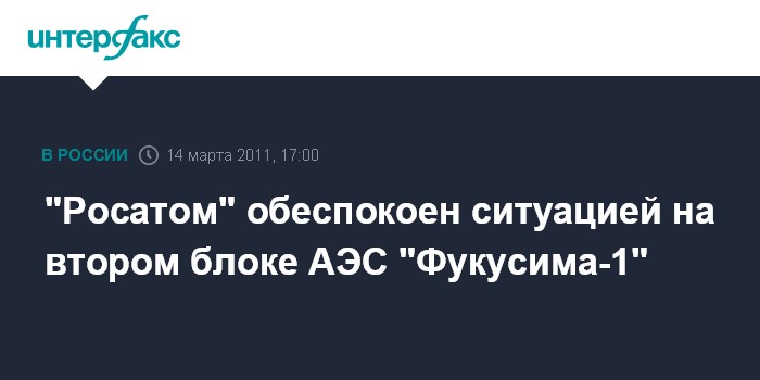 Москва. 14 марта. INTERFAX.Ru - "Росатом" выражает беспокойство по поводу ситуации на втором энергоблоке АЭС "Фукусима-1" в Японии, сообщил на брифинге замглавы госкорпорации, глава оперативного штаба Александр Локшин.