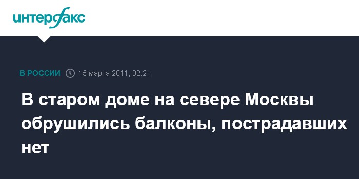 Москва. 15 марта. ИНТЕРФАКС - Обрушение балконов произошло в старом доме в районе Сущевского Вала в Москве.