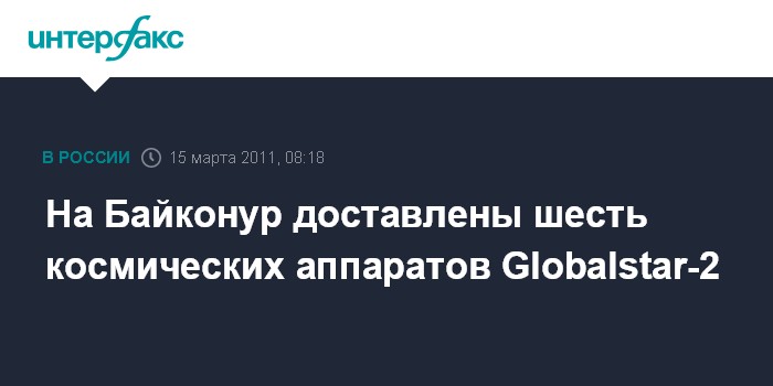 Байконур. 15 марта. INTERFAX.RU - В 07:05 (мск) вторника на аэродроме "Юбилейный" совершил посадку самолет Ан-124 "Руслан", который доставил на Байконур контейнеры с шестью космическими аппаратами "Глобалстар-2" (Globalstar-2), сообщил агентству "Интерфакс-Казахстан" источник на космодроме.