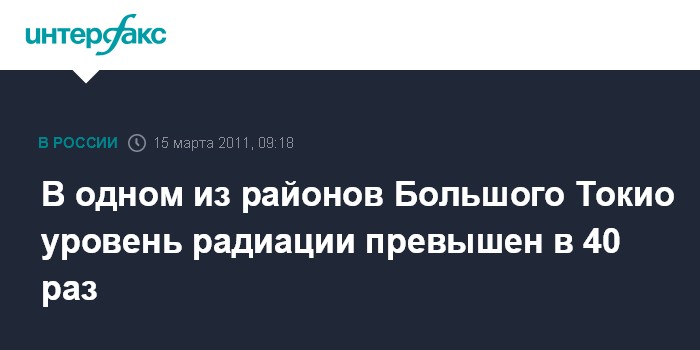 Токио. 15 марта. INTERFAX.RU - Уровень радиации, в 40 раз превышающий норму, зафиксирован в префектуре Саитама, входящей в конгломерат Большого Токио, сообщает во вторник токийская мэрия.