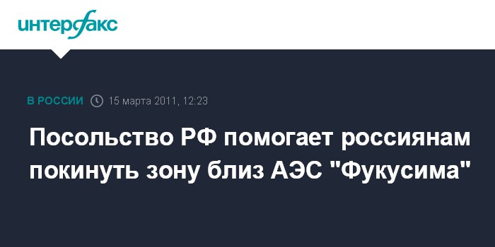 Москва/Токио. 15 марта. INTERFAX.RU - Российское посольство в Токио помогает россиянам покинуть опасную зону близ АЭС "Фукусима".