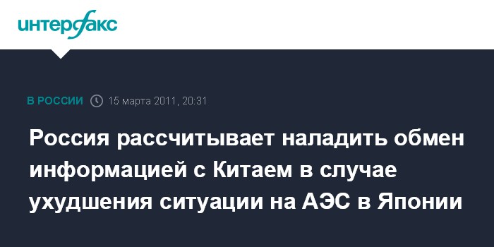 Россия рассчитывает наладить обмен информацией с Китаем в случае ухудшения ситуации на АЭС в Японии