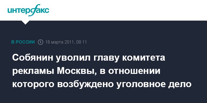 Собянин уволил главу комитета рекламы Москвы, в отношении которого возбуждено уголовное дело