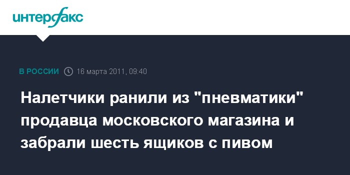 Налетчики ранили из "пневматики" продавца московского магазина и забрали шесть ящиков с пивом