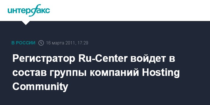 "Группа компаний Hosting Community, ОАО "РБК информационные системы" и ЗАО "РСИЦ" достигли договоренности о вхождении регистратора доменных имен и хостинг-провайдера Ru-Center в состав группы компаний Hosting Community", - сказано в сообщении.