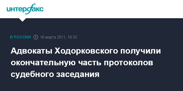 Адвокаты Ходорковского получили окончательную часть протоколов судебного заседания