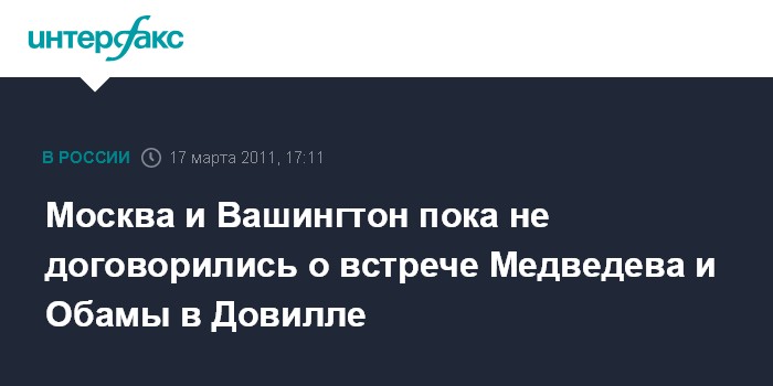 Москва. 17 марта. INTERFAX.RU - Четкой договоренности о двусторонней встрече президента России Дмитрия Медведева и президента США Барака Обамы во французском Довилле в рамках саммита "большой восьмерки" пока нет.