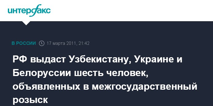 РФ выдаст Узбекистану, Украине и Белоруссии шесть человек, объявленных в межгосударственный розыск