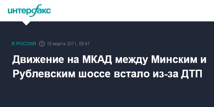 Движение на МКАД между Минским и Рублевским шоссе встало из-за ДТП