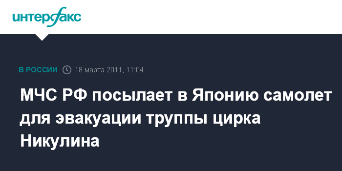 Москва. 18 марта. INTERFAX.Ru - Артисты московского цирка имени Юрия Никулина будут эвакуированы из Японии самолетом МЧС России.