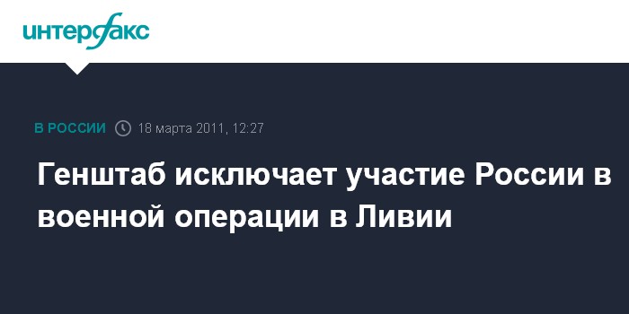 Москва. 18 марта. INTERFAX.RU - Начальник Генштаба Вооруженных Сил РФ Николай Макаров исключил возможность участия России в военной операции в отношении Ливии.