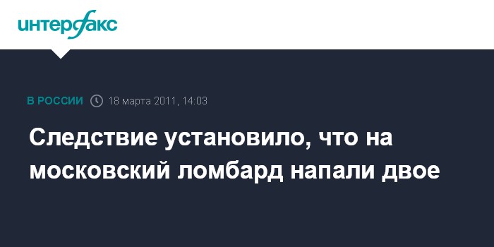 Следствие установило, что на московский ломбард напали двое
