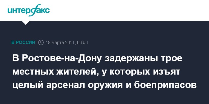 Москва. 19 марта. ИНТЕРФАКС - Трое жителей Ростова-на-Дону задержаны за незаконное хранение большого количества оружия и боеприпасов, сообщили "Интерфаксу" в правоохранительных органах.