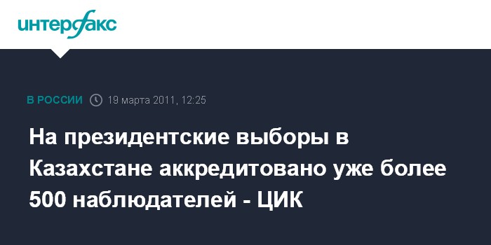 Астана. 19 марта. INTERFAX.RU - Центризбирком Казахстана на заседании в субботу в Астане принял постановление об аккредитации более 150 наблюдателей за внеочередными выборами президента страны. "ЦИК постановляет аккредитовать по представлению МИД Казахстана 154 наблюдателя от иностранных государств и международных организаций", - сказала на заседании член ЦИК Татьяна Охлопкова. Внеочередные выборы президента Казахстана назначены на 3 апреля.