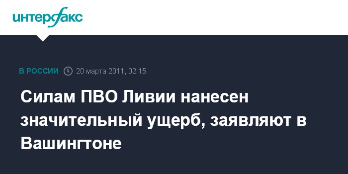 Вашингтон. 20 марта. ИНТЕРФАКС - Ливийская инфраструктура ПВО серьезно повреждена в результате ударов, нанесенных коалиционными силами, сообщил представитель министерства внутренней безопасности США.