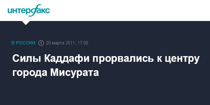Лондон. 20 марта. INTERFAX.RU - Солдаты ливийской армии, верной полковнику Муамару Каддафи, в воскресенье при поддержке танков вышли в центр города Мисурата, находившегося под контролем оппозиции. Британская телерадиокорпорация Би-би-си сообщает, что порт города блокировали корабли ливийского лидера. В результате обстрела и столкновений в городе погибли не менее 10 человек, еще 40 человек были ранены.