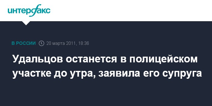 Удальцов останется в полицейском участке до утра, заявила его супруга