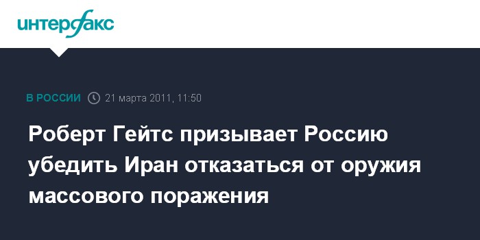 Роберт Гейтс призывает Россию убедить Иран отказаться от оружия массового поражения