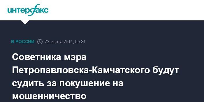 Петропавловск-Камчатский. 22 марта. ИНТЕРФАКС-ДАЛЬНИЙ ВОСТОК - Камчатские следователи завершили расследование уголовного дела в отношении советника мэра Петропавловска-Камчатского, обвиняемого по ч. 3 ст. 30, ч. 3 ст. 159 УК РФ ("покушение на мошенничество в особо крупном размере").