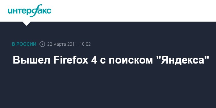 Москва. 22 марта. INTERFAX.RU - Компания Mozilla закончила тестирование броаузера Firefox 4.0 и начала раздавать его финальную версию, сообщили interfax.ru в компании "Яндекс", чей поисковик по умолчанию стоит в браузере для российских пользователей. Россия единственная страна, где первое место в списке поисковиков Firefox отводит местной поисковой системе, отметили в "Яндексе".