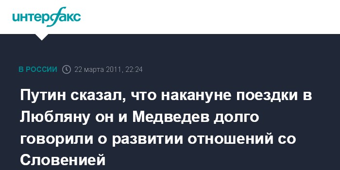Путин сказал, что накануне поездки в Любляну он и Медведев долго говорили о развитии отношений со Словенией