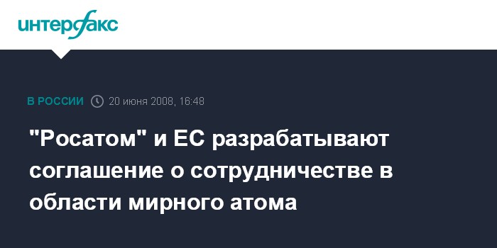 Москва. 20 июня. INTERFAX.RU - Госкорпорация "Росатом" и ЕС прорабатывают соглашение по сотрудничеству в области мирного атома, сообщил журналистам замглавы "Росатома" Николай Спасский в Москве.