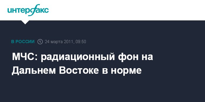 Хабаровск. 24 марта. INTERFAX.RU - По состоянию на 10:00 по хабаровскому времени (3:00 мск) на территории Дальнего Востока естественный уровня радиационного фона еще снизился в среднем на 2 мкр/ч.