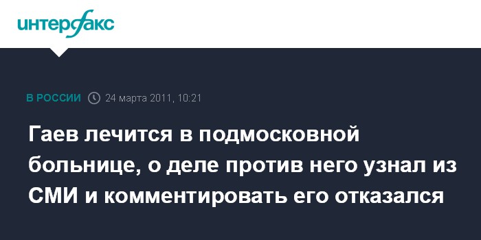 Гаев лечится в подмосковной больнице, о деле против него узнал из СМИ и комментировать его отказался