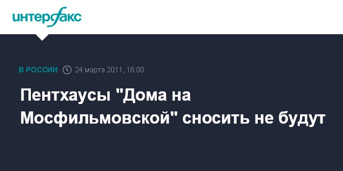 Пентхаусы "Дома на Мосфильмовской" сносить не будут
