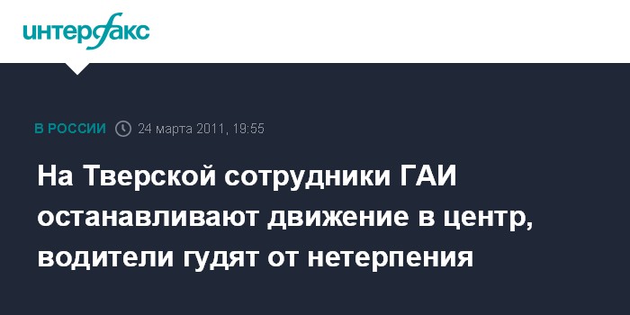 Москва. 24 марта. INTERFAX.RU - Автоинспекция периодически перекрывает движение на Тверской улице в сторону центра Москвы, вызывая массовые возмущенные сигналы водителей.