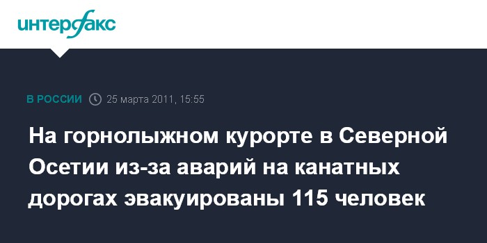 Владикавказ. 25 марта. INTERFAX.RU - Вследствие сильного ветра в Цее (Северная Осетия) в пятницу около полудня произошла авария на канатных дорогах горнолыжного курорта.