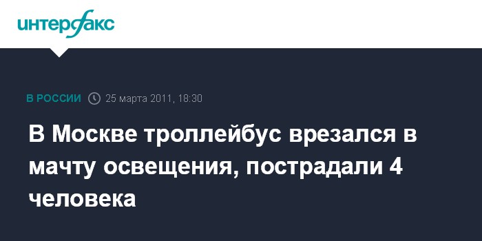 Москва. 25 марта. INTERFAX.RU - Четверо пассажиров пострадали в результате ДТП с троллейбусом на юго-востоке Москвы.