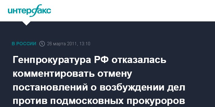 Генпрокуратура РФ отказалась комментировать отмену постановлений о возбуждении дел против подмосковных прокуроров