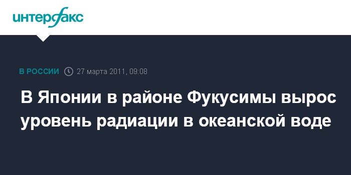 Лондон. 27 марта. ИНТЕРФАКС - В Японии за минувшие сутки содержание радиоактивного йода в прибрежной воде в районе аварийной АЭС в Фукусиме увеличилось в полтора раза, передает британская телерадиокорпорация Би-би-си.